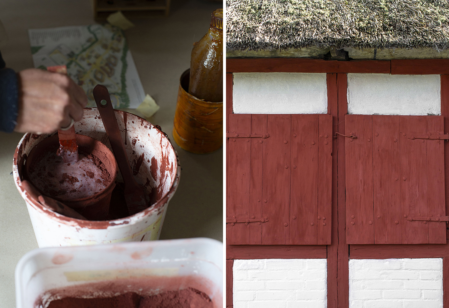 Buttermilk is also the basic ingredient in the paint Astrid Ellen Cramer Magnussen is preparing when I visit her in the painter’s workshop at the open-air museum the Funen Village.