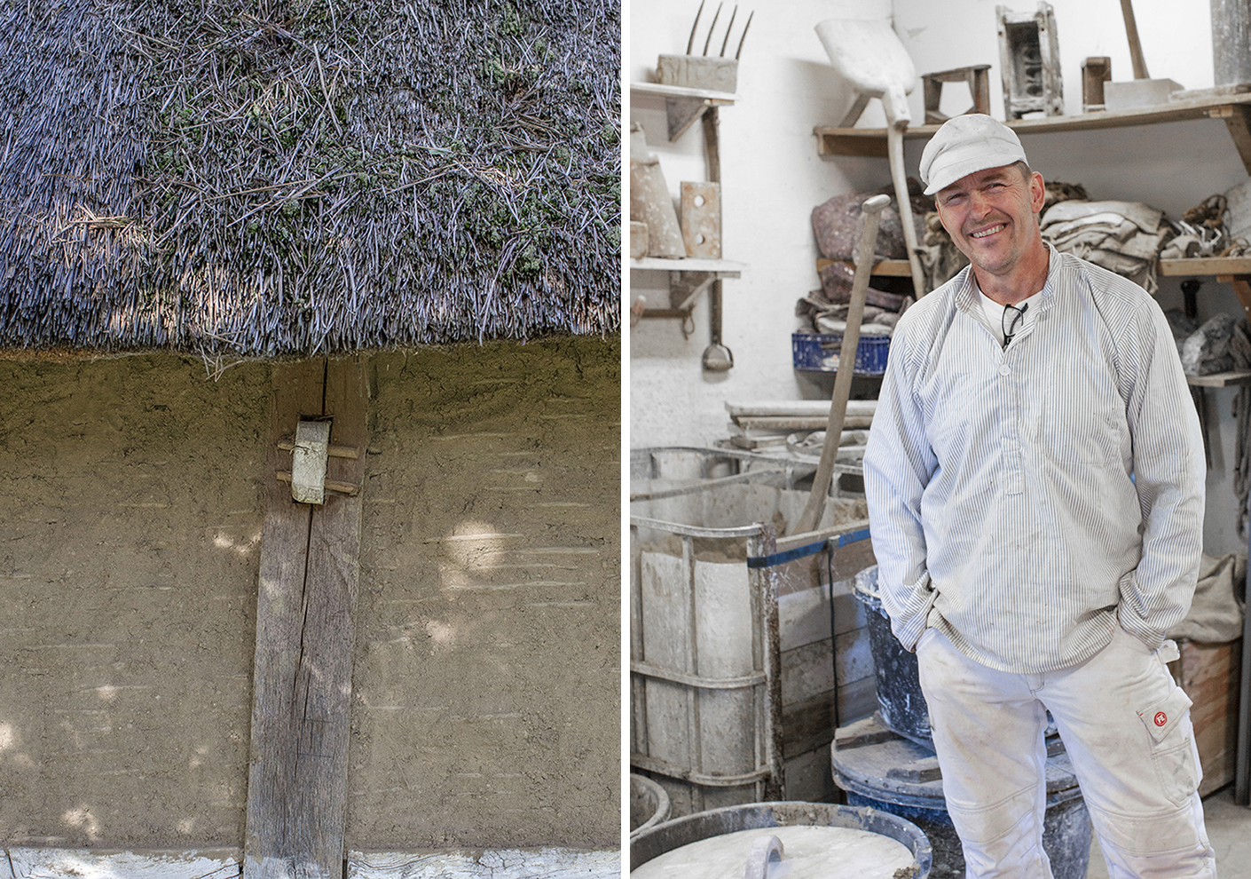 He splits his time between communication – including courses and visitor activities – and maintenance of the farms and houses in the museum village. He is a passionate advocate for unfired bricks, and through experimentation he has developed a version that is simple to produce from clay sourced on-site.