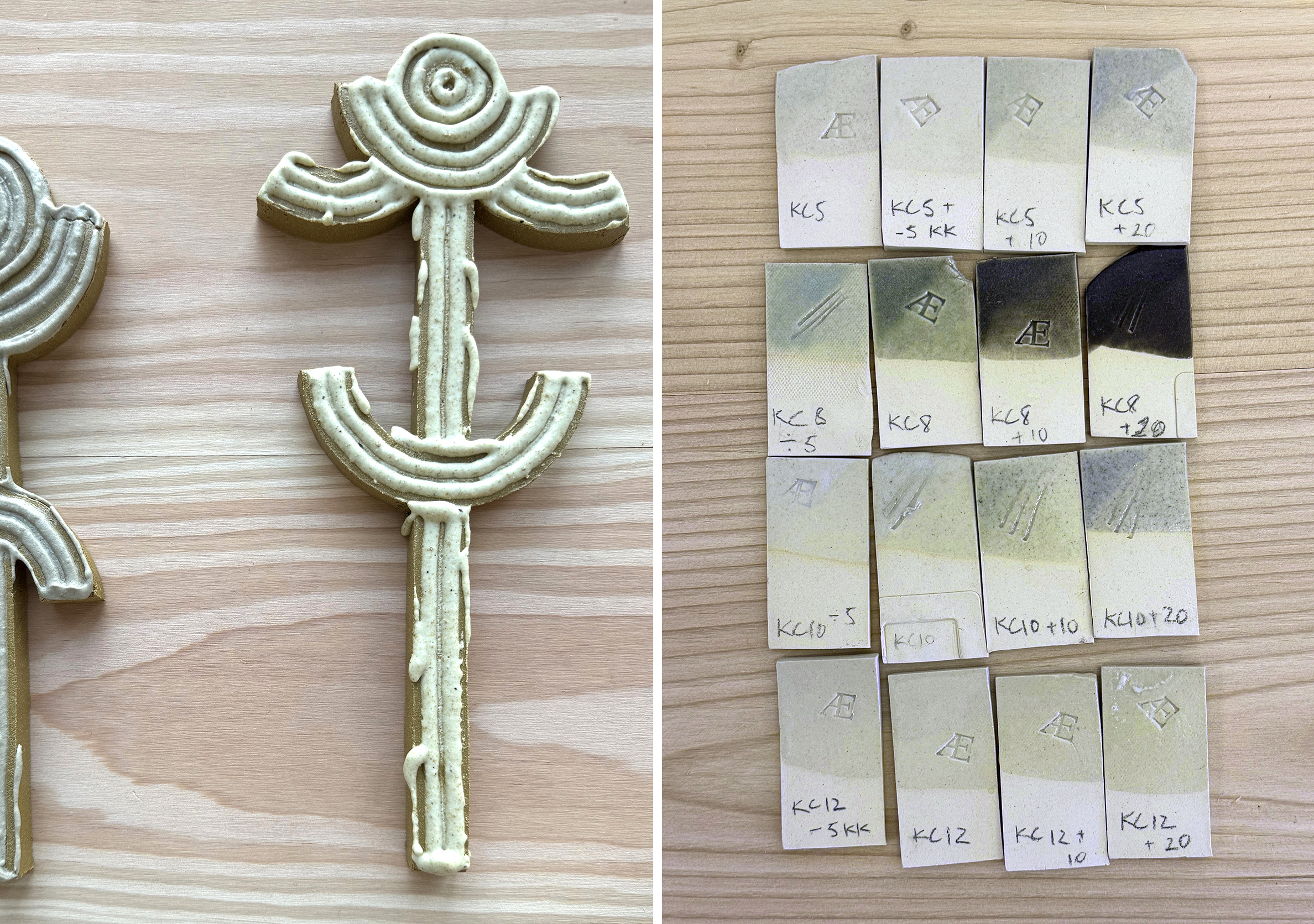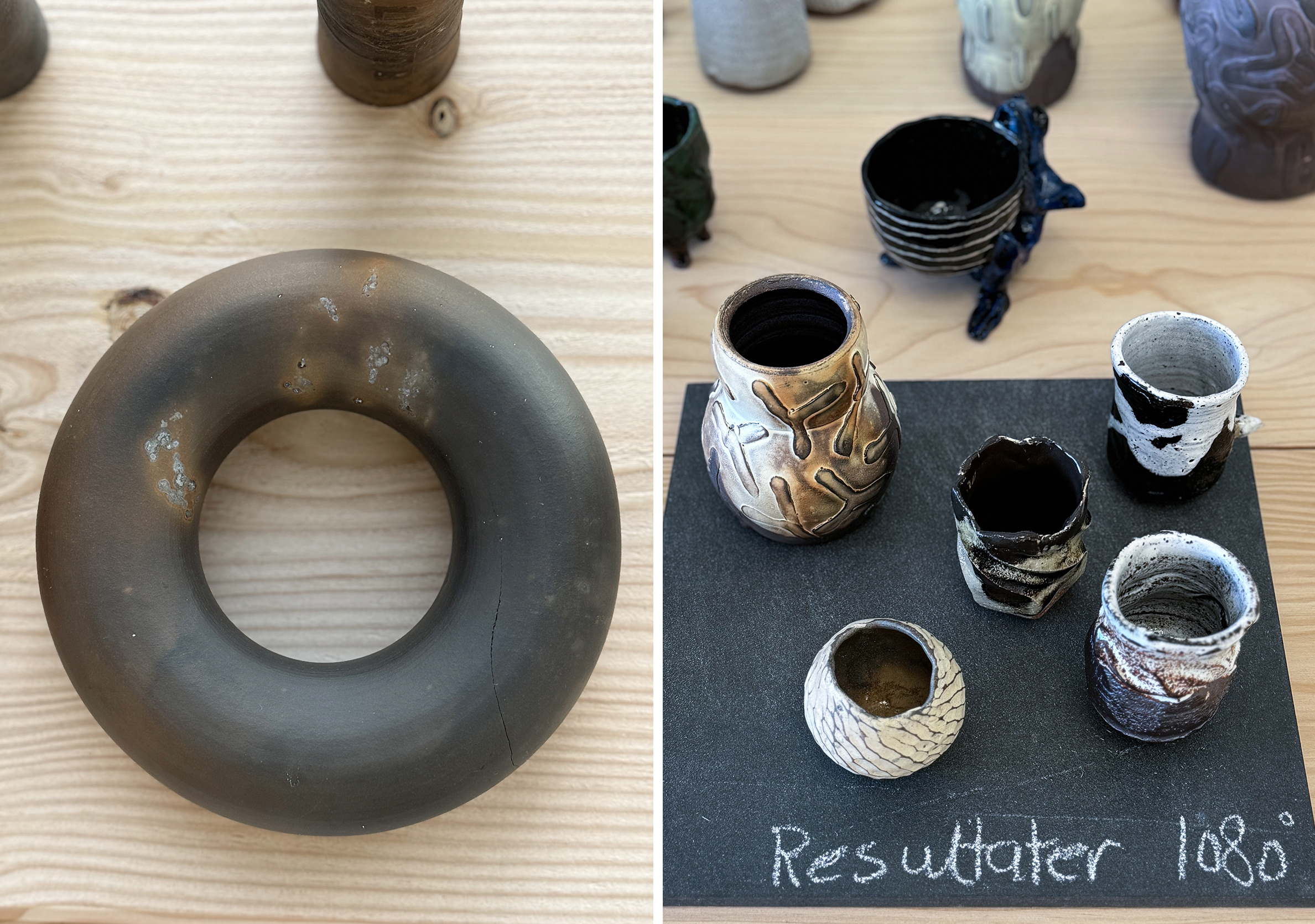 The topics that came up ranged from philosophical and aesthetic reflections on excavating local clay, reusing materials, crushing fired ceramics and experiences with different firing methods, including lowering the kiln temperature and raw-glazing, which omits the initial pre-glaze firing. This method has mainly been embraced by potters, including the Austrian-born studio potter Luci Rie, whose 2024 exhibition was CLAY’s most acclaimed event. Locally, it is also pursued by Christine Urfe Bendt (featured in bookazine no. 3), who was a member of one of the seven working groups.