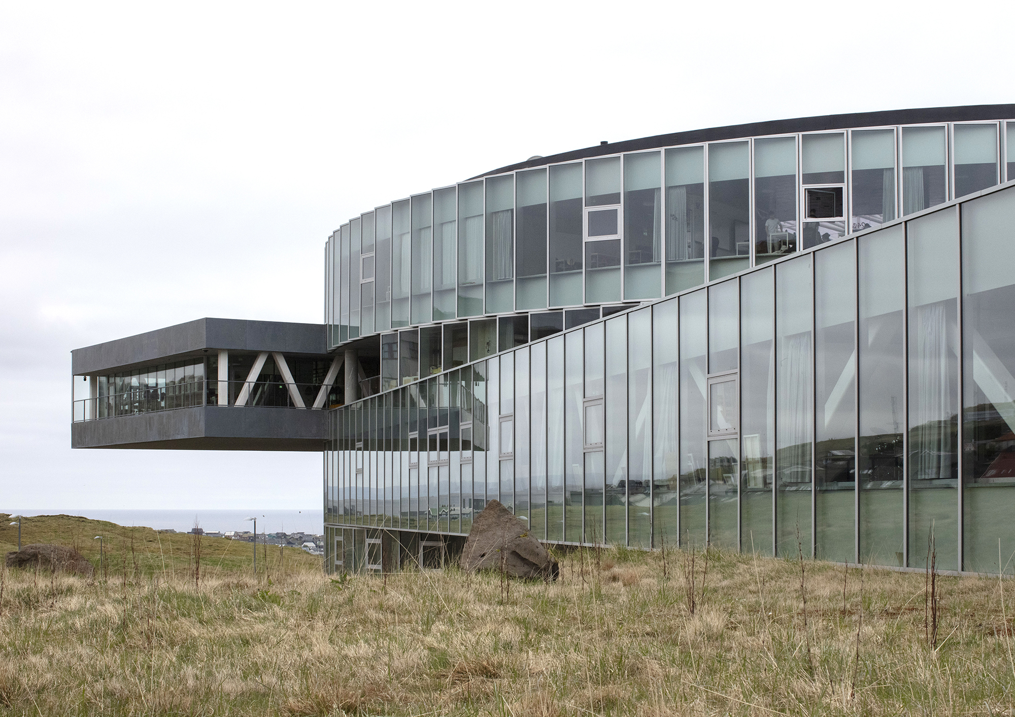 The invitation included accommodation at Hotel Føroyar, which is located on a rock off of Tórshavn. In its current form, the hotel opened in 1983. In 2020, it was expanded from 160 rooms to 200 and added a spa section.