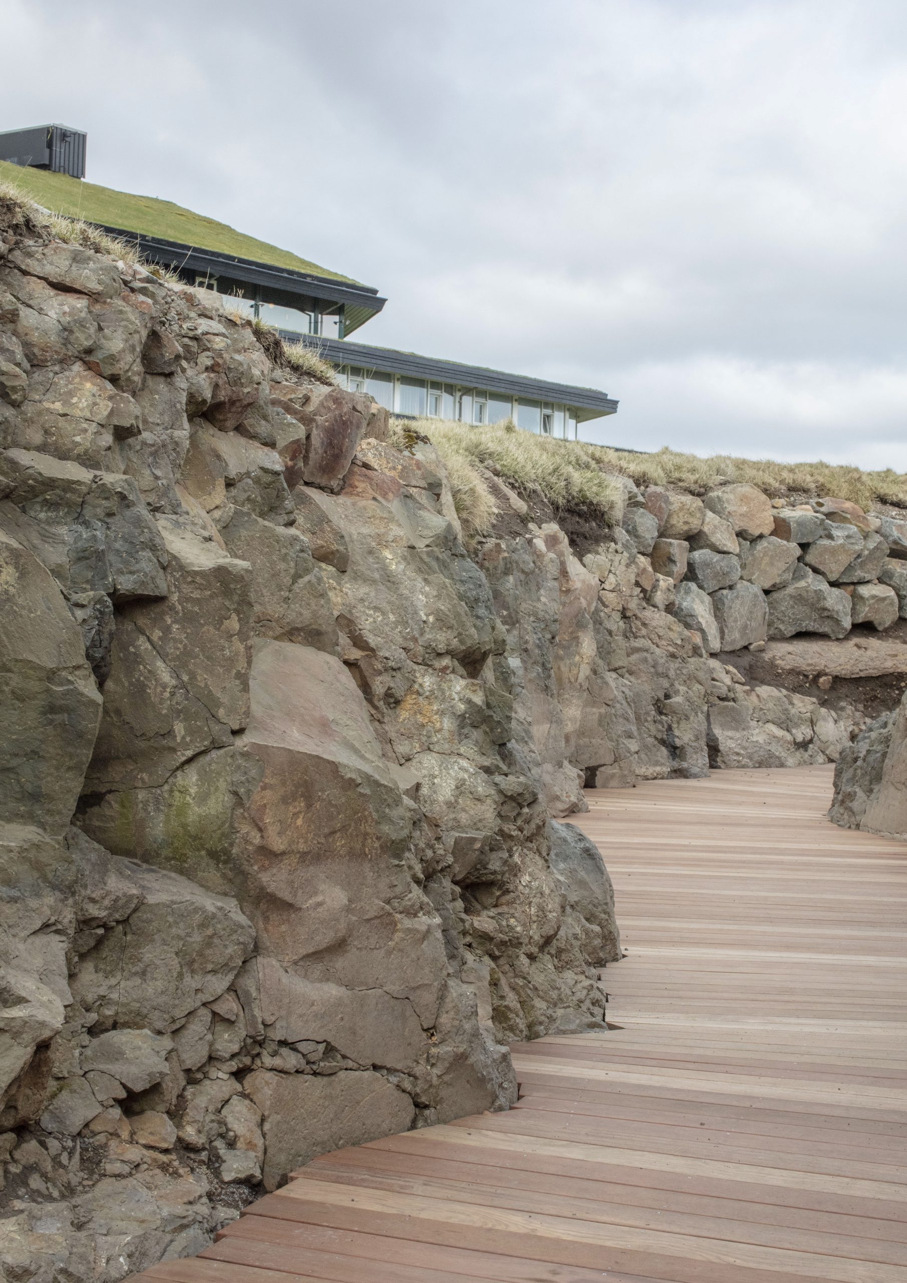 Arkitekten bag den nye spabygning er Høgni Laksáfoss. Han har tidligere, som ansat hos det færøske arkitektfirma Fuglark, samarbejdet med danske BIC om den imponerende bygning Glasir – Tórshavn College, som jeg også havde udsigt til fra mit værelse.